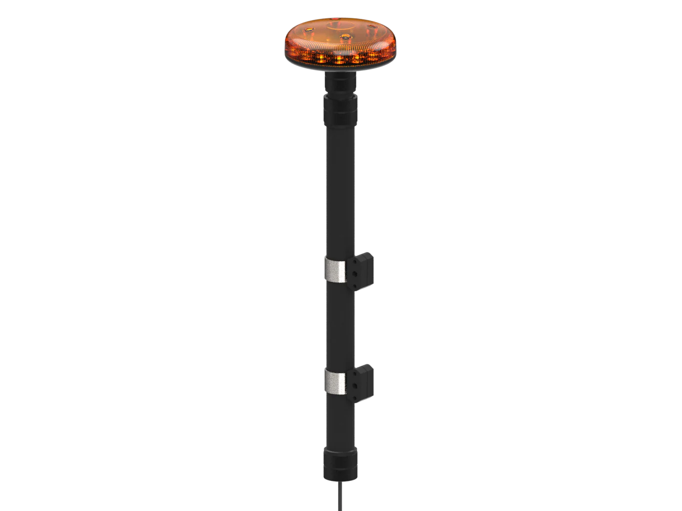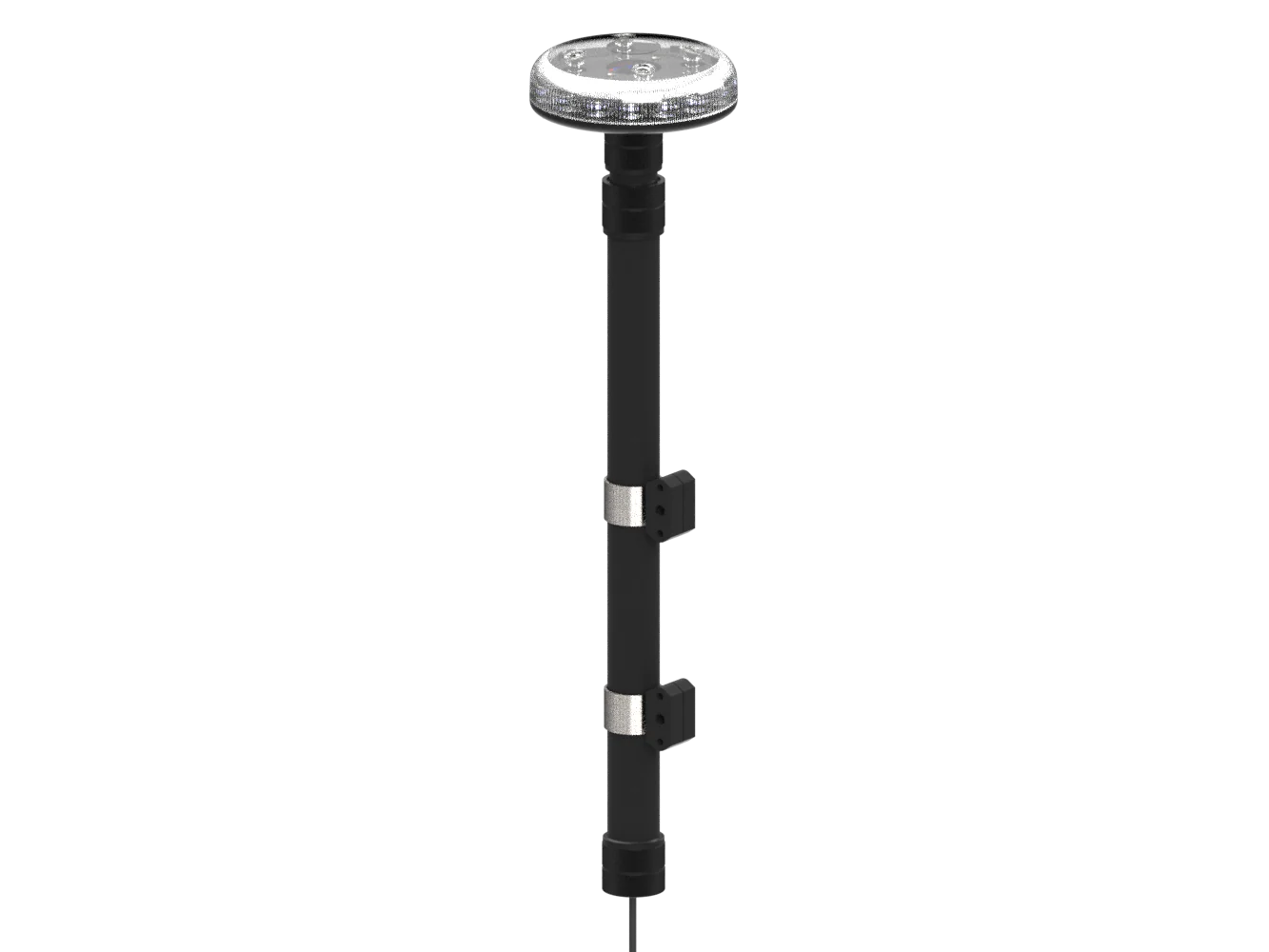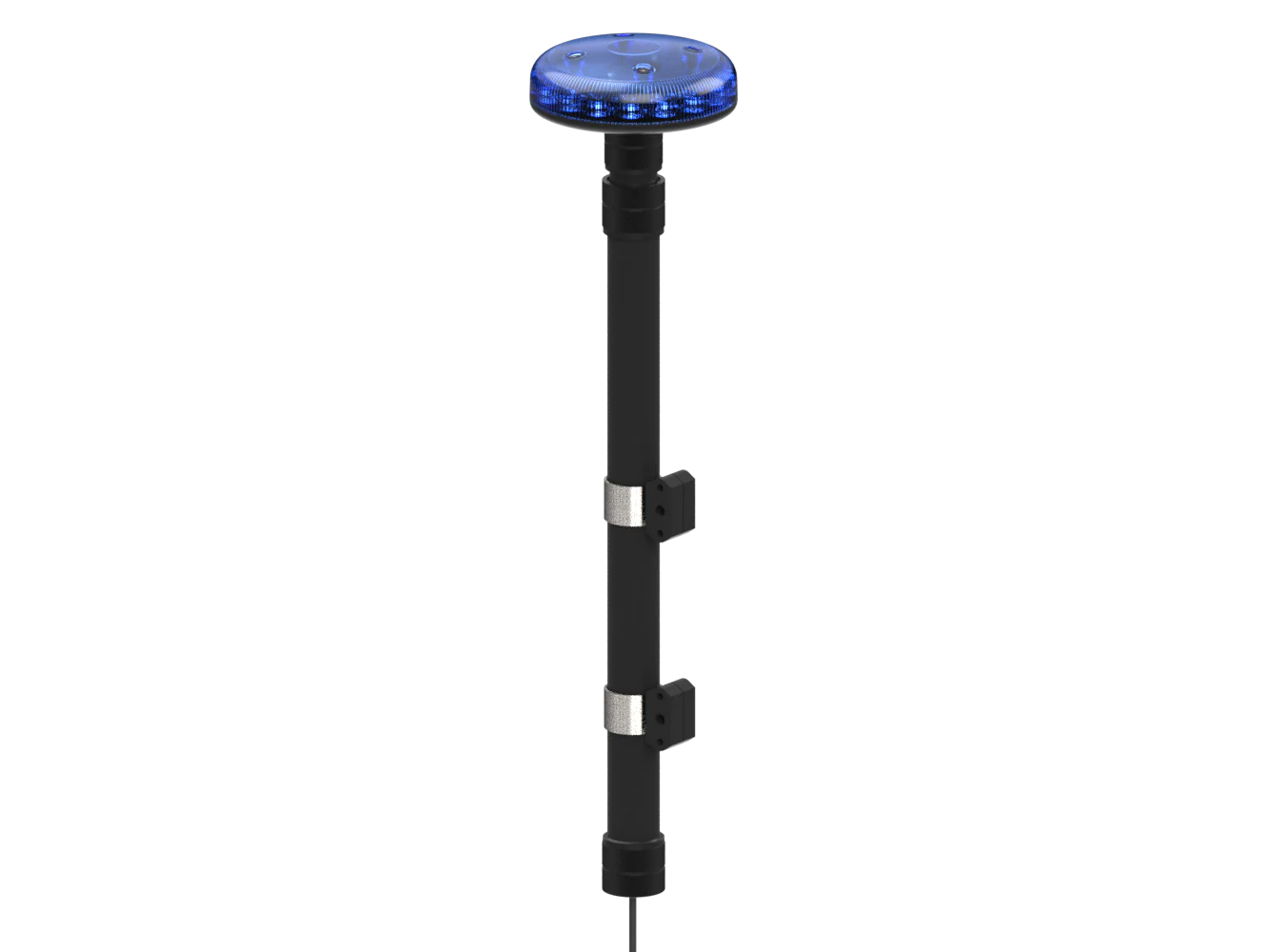 Flache, leuchtstarke und nach ECE R65 Klasse 2 zugelassene LED Rundumleuchte auf ausziehbarem Teleskopmast für den speziellen Einsatz auf Motorrädern, Quads und ATVs.