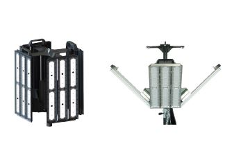 Mobiles Beleuchtungssystem in LED Ausführung mit insgesamt 4 Leuchtpanelen und bis zu 100.000 Lumen Lichtleistung, montiert auf einem bis zu 4 Meter ausfahrbarem Stativ. Die 4 Leuchtmodule können wahlweise als Gruppen (180 oder 360 Grad) aktiviert und jeweils bis zu 45 Grad nach unten geneigt werden. Die Helligkeit kann von 10% bis zu 100% beliebig gesteuert werden. Achtung: Stromanschluss für 230 Volt notwendig.