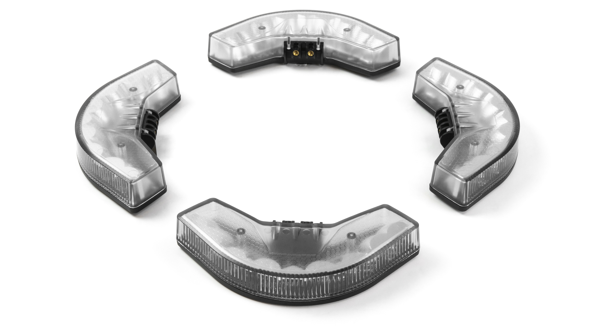 Breit streuende LED Warnmodule als vollwertger Ersatz oder Ergänzung für bestehende Rundumleuchten für die Montage an Fahrzeug- / Kofferaufbauten mit ECE R65 Klasse 2 Zulassung (H, HT & X) und 270 Grad (2 Module) bzw. 360 Grad (4 Module) Abstrahlung. Die Module können alleinstehend oder in Kombination mit Warnbalken oder Rundumleuchten verwendet werden.