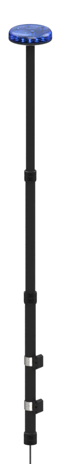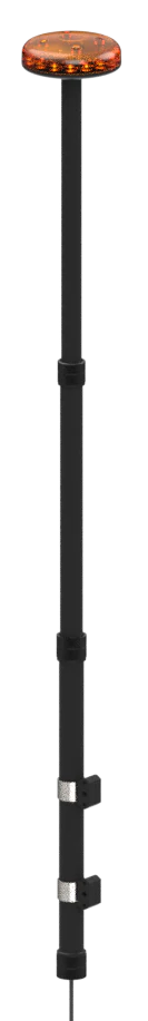 Flache, leuchtstarke und nach ECE R65 Klasse 2 zugelassene LED Rundumleuchte auf ausziehbarem Teleskopmast für den speziellen Einsatz auf Motorrädern, Quads und ATVs.