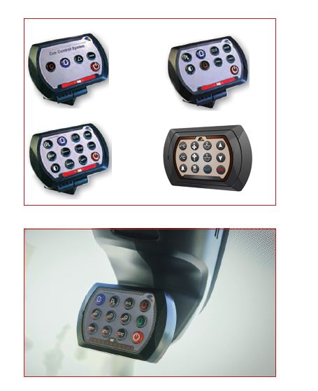 CAN BUS gesteuerte Bedienkonsole zur Steuerung aller signalspezifischen Einrichtungen im und am Fahrzeug als Ausführung mit 4, 8 oder 12 Tasten oder als XXL Ausführung mit Touchscreen / Tastenkombination und fahrzeugspezifischem Diagramm, visuellen Statusmeldungen und Rückfahrkamera.