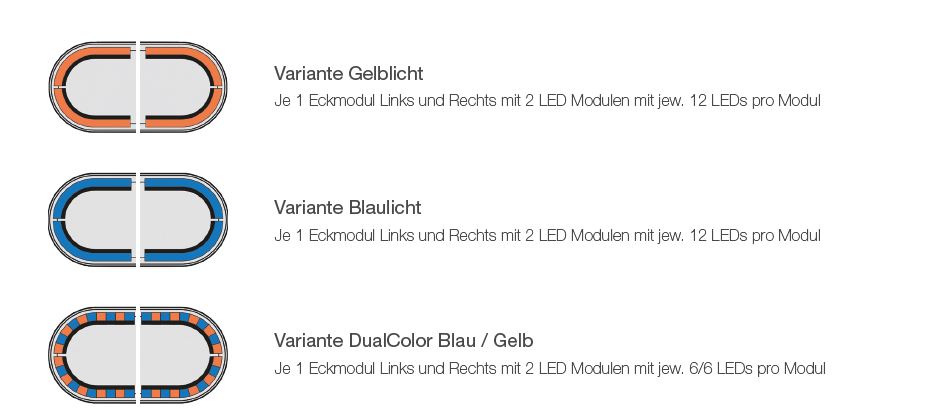| Anzahl LED Module (Basisausführung): | 4x LED Modul mit jeweils 12 LEDs pro Modul |
