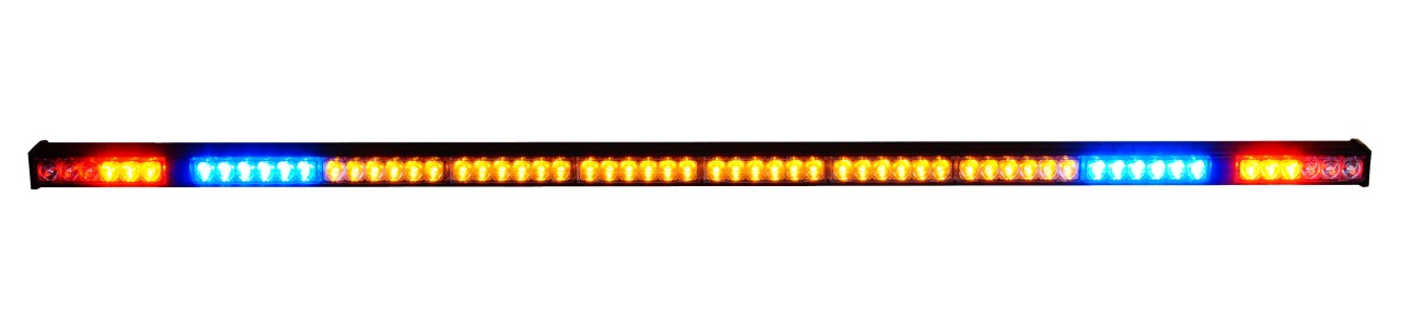 LED Heckwarnanlage mit 2 integrierten Fahrtrichtungsanzeiger- (Blinker), Brems- und Rücklichtmodulen (ECE R6 & R7 zugelassen), 2 blauen und 6 gelben Warnmodulen (ECE R65 zugelassen) und insgesamt 10 LED Modulen zur Absicherung in Gefahren- / Unfallszenarien.