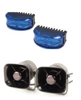 Komplettwarnanlage für Einsatzmotorräder oder Quad / ATV bestehend aus 1 Stück 360 Grad LED Rundumleuchte auf Teleskopmontage (ausziehbar), 2 Stück LED Frontblitzern mit 180 Grad Abstrahlrichtung (XB1 Zulassung), kompletter Sondersignalanlage mit Verstärkerteil und 2 Stück Neodym Lautsprechern mit KBA Zulassung für Deutschland, sowie Handbedienteil mit 4 beleuchteten Softkey Tasten für die Montage am Lenker und zentralem Steuergerät.