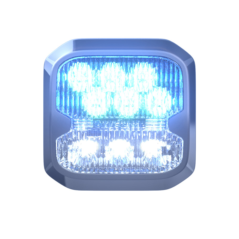 Kompakte Warnleuchte mit integrierter Umfeldbeleuchtung, 9 frei programmierbaren Blitzmustern und ECE R65 Klasse 2 Zulassung.