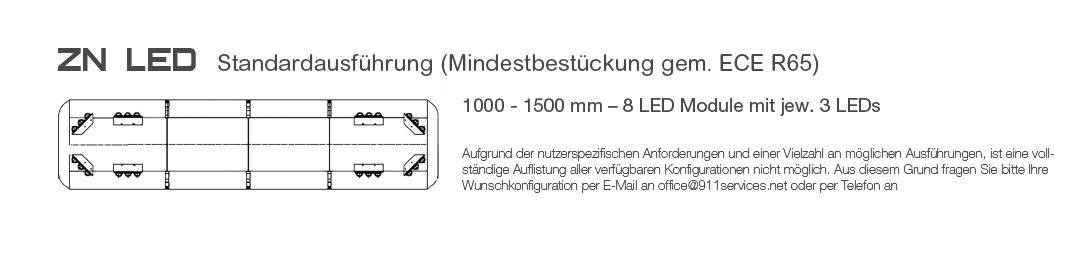 | Anzahl LED Module (Basisausführung): | 1000 - 1500 mm – 8 LED Module mit jew. 3 LEDs |